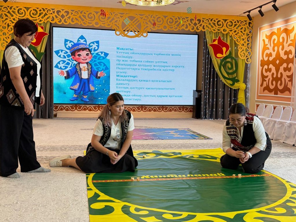 Іс-шараның мақсаты – ұлттық ойындар арқылы балалардың танымдық қабілетін дамыту, салт-дәстүрге деген қызығушылығын арттыру. Семинар барысында тәрбиешілер қазақтың дәстүрлі ойындарына (мысалы, асық ату, бес кеңей, тас қала) қатысты