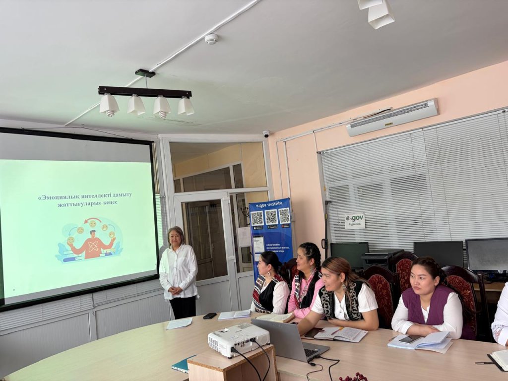 «Балабақша әлемі» жас мамандар мектебінде педагог-психолог Идрисова К.Г «Эмоциялық интеллекті дамыту жаттығулары» тақырыбында кеңес өткізді.