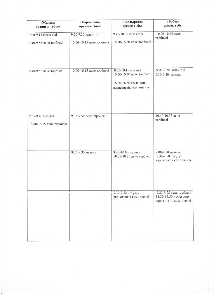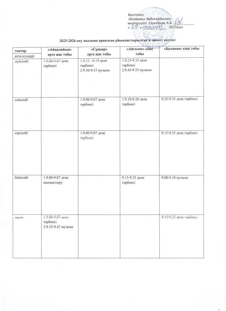 2025-2026 оқу жылының ұйымдастырылған іс- әрекет кестесі.